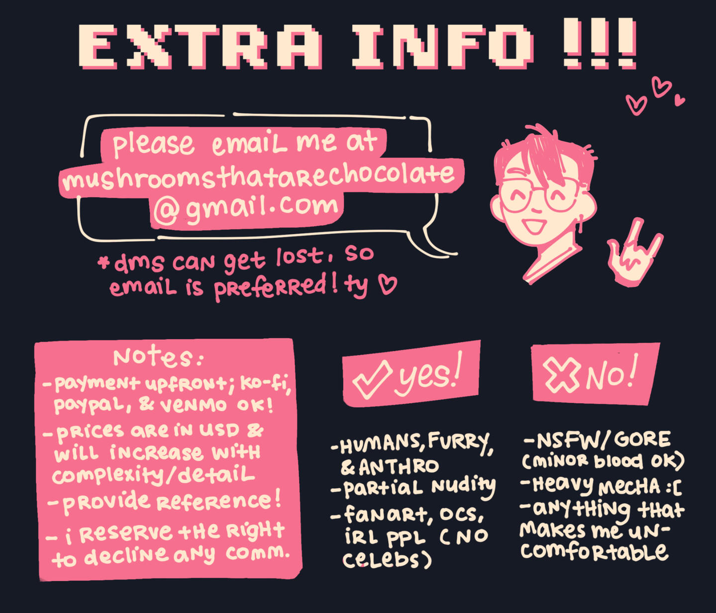 -i will also most likely post it on social media. please let me know ahead of time if you would like the commission to be kept private.